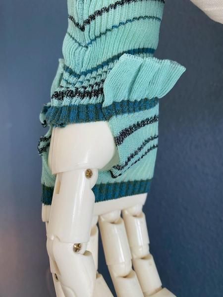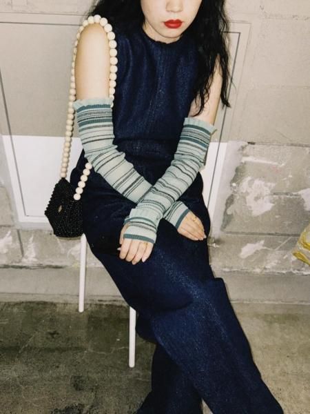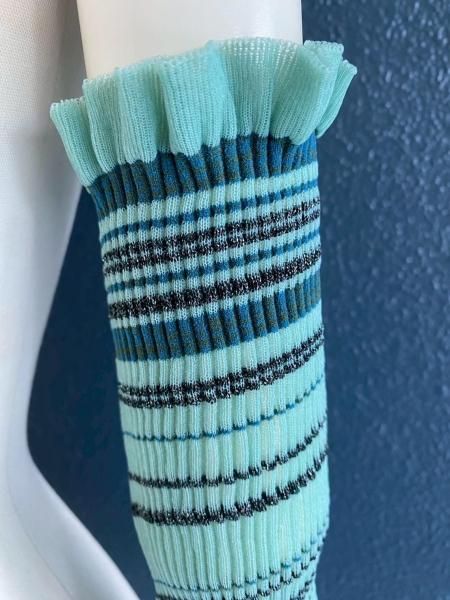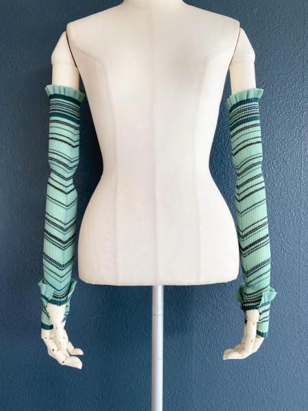 ラメ入りボーダー柄のアームウォーマー。