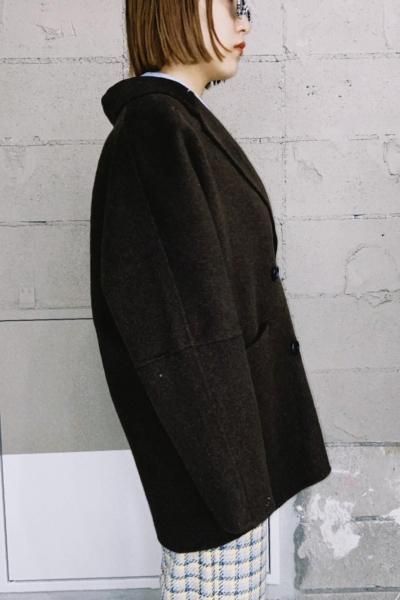 一般的なピーコートよりもゆったりとしたサイズ感で、リラックスした雰囲気を演出。